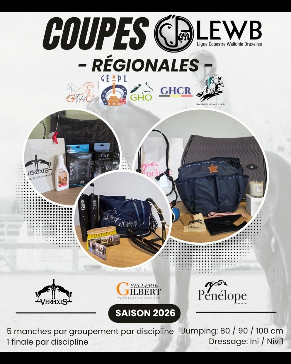La saison des Coupes régionales LEWB en saut d’obstacles et en dressage est officiellement relancée, toujours en collaboration avec la Sellerie Gilbert ainsi que les marques Pénélope Leprévost et Veredus.