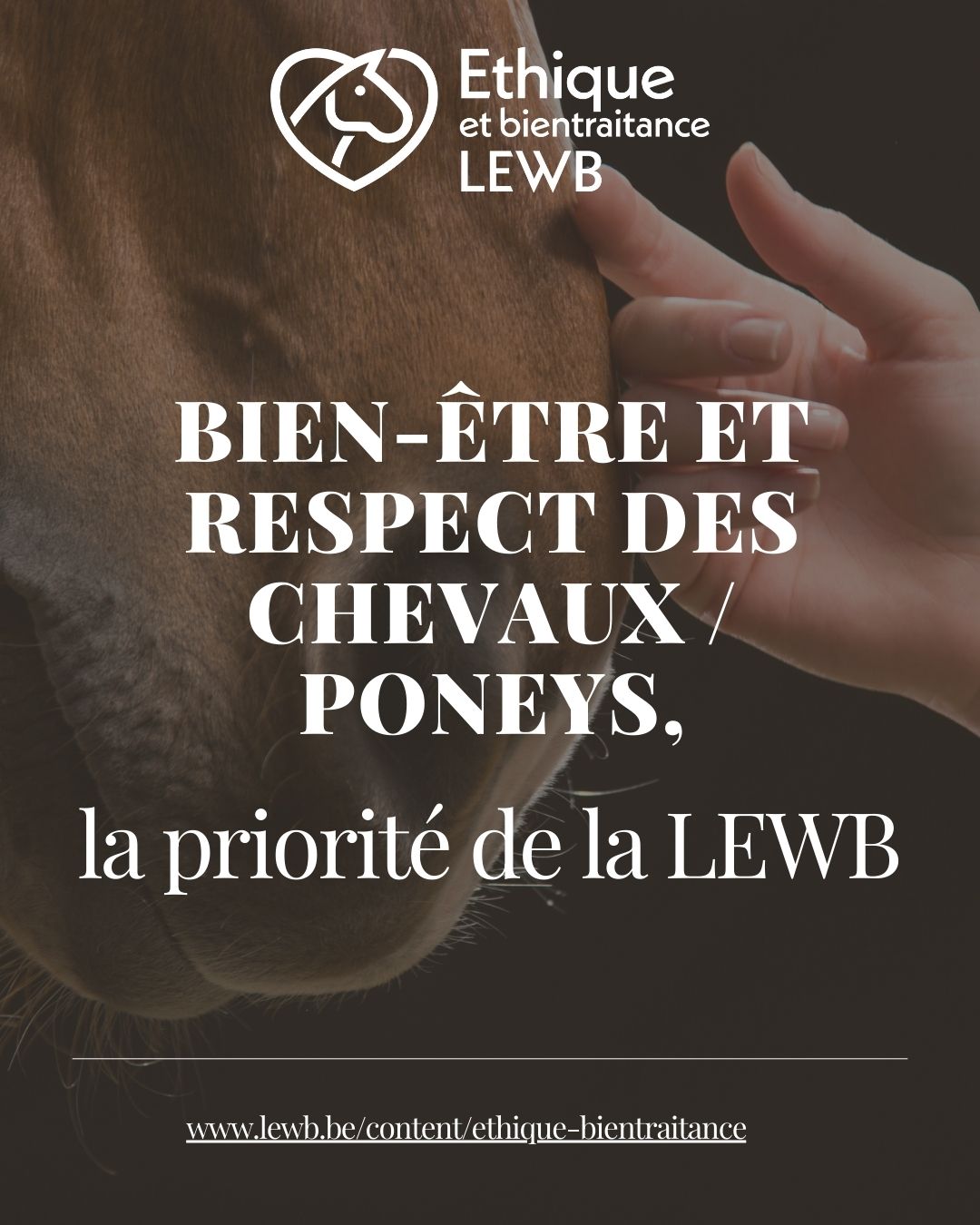 Les instances de la LEWB, à l’instar de la FEI, rappellent avec force qu’aucune forme de maltraitance n’est tolérée dans le secteur équestre. Chacun de nous est le gardien du bien-être équin : « La responsabilité d'être les gardiens du bien-être des chevaux dans le sport équestre est une tâche importante qui incombe non seulement à la FEI, mais aussi à toutes les personnes impliquées dans ce sport. Pour le bien des chevaux et l'avenir du sport, chacun doit devenir un gardien et agir lorsque cela est nécessaire. Nous sommes tous des gardiens ! »