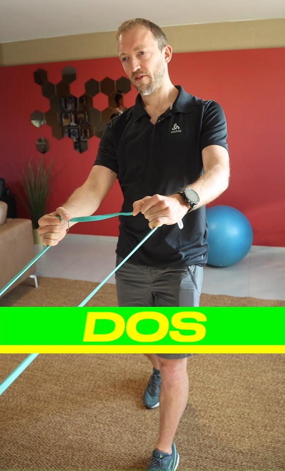 Combien de moniteurs répètent sans cesse : « Tiens-toi droit » lorsqu’on est en selle ! Ce travail du dos avec l’élastique va t’aider à te redresser, aussi bien à cheval qu’à pied ! Attention à bien attacher ton élastique pour ne pas le recevoir dans le nez !