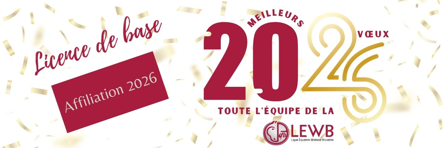 Il faut renouveler la licence L01 2026 en passant par un club/cercle équestre depuis ce lundi 5 janvier. L'entièreté des formalités administratives (coordonnées et paiement) se fait auprès du responsable de votre club. Il n'est pas possible de payer le renouvellement d'une licence de base L01 directement sur le compte bancaire de la LEWB, même si vous vous trouvez en écurie privée ou à domicile.